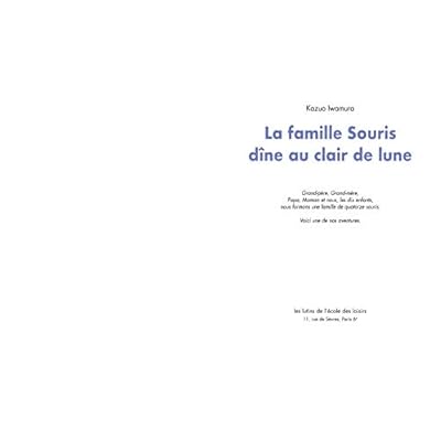 Mais pourquoi tous les enfants de la famille Souris s'agitent-ils tant dans ce grand arbre ? C'est pour préparer un dîner, un dîner au clair de lune... Quelle belle soirée ! Retrouvez les aventures de la Famille Souris dans les 10 autres albums parus à l'école des loisirs !