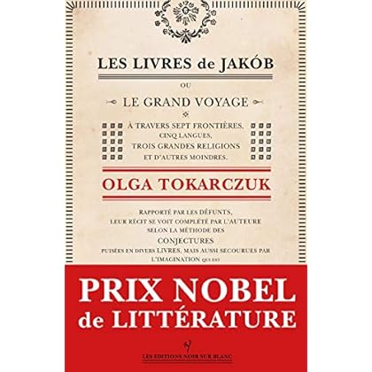 Prix Nobel de littérature 2018 Hérétique, schismatique, Juif converti à l’islam puis au christianisme, libertin, hors-la-loi, tour à tour misérable et richissime, vertueux et abominable, Jakób Frank a traversé l’Europe des Lumières comme la mèche allumée d’un baril de poudre. De là à se prendre pour le Messie, il n’y avait qu’un pas – et il le franchit allègrement. Le dessein de cet homme était pourtant des plus simples : il voulait que ceux de son peuple puissent, eux aussi, connaître la sécurité et le respect d’autrui. Il voulait l’égalité. La vie de ce personnage historique, qui fut considéré comme le Luther du monde juif, est tellement stupéfiante qu’elle semble imaginaire. Un critique polonais, saluant la réussite absolue de ce roman de mille pages, dit qu’il a fallu à Olga Tokarczuk une « folie méthodique » pour l’écrire. On y retrouve les tragédies du temps, les guerres, les pogroms et la ségrégation, mais on y goûte aussi les merveilles de la vie quotidienne : les marchés, les cuisines, les petits métiers, les routes incertaines et les champs où l’on peine, l’étude des mystères et des textes sacrés, les histoires qu’on raconte aux petits enfants, les mariages où l’on danse, les rires et les premiers baisers. Ainsi que le dit le père Chmielowski, l’autre grand personnage de ce roman, auteur naïf et admirable de la première encyclopédie polonaise, la littérature est une forme de savoir, elle est « la perfection des formes imprécises ». Olga Tokarczuk a reçu le prix Niké (équivalent polonais du Goncourt) en 2008 pour Les Pérégrins et en 2012 pour Les Livres de Jacob. Elle a également reçu le le Man Booker International Prize 2018 pour la traduction anglaise de son roman Les Pérégrins. Née en 1962, elle a étudié la psychologie à l’Université de Varsovie. Romancière la plus célèbre de sa génération, elle est l’auteur polonais contemporain le plus traduit dans le monde. Cinq de ses livres ont déjà été publiés en France : Dieu, le temps, les hommes et les anges ; Maison de jour, maison de nuit (Robert Laffont, 1998 et 2001), Récits ultimes (Noir sur Blanc, 2007), Les Pérégrins (Noir sur Blanc, 2010) et Sur les ossements des morts (Noir sur Blanc, 2012).