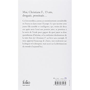 Un témoignage poignant, sensible, qui n'aura pas finit de vous hérisser les poils tout du long.Nous sommes plongés au c?ur d'une cité de Berlin, ou les substances illégales apparaissent à tout va, même là ou on s'y attend le moins. Nous sommes plongés à l'appartenance, composé par ses différents groupes tout au long du récit.Egalement des frissons avec l'explication des injections des drogues, difficulté aussi pour s'arrêter, avec des rechutes nombreuses.Tout y est, c'est saisissant, criant la réalité et difficile de poser le livre.Les différentes parties avec les personnages qui interviennent sont intéressantes, cela permet d'avoir leurs regards.Ames sensibles s'abstenir, un roman à lire.