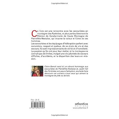 Ce livre est une rencontre avec les secouristes en montagne des Pyrénées, et plus particulièrement le Peloton de Gendarmerie de Haute Montagne de Pierrefitte-Nestalas, qui incarne la valeur et l'âme de ces hommes. Les secouristes et les équipages d'hélicoptère parlent avec conviction, respect et pudeur, de ce choix de vie et des secours. Ils sont impressionnants de vérité et d'honnêteté. La passion qu'ils ont pour leur métier et la montagne ne connaît pas de limites, malgré une vie jalonnée de secours difficiles, d'accidents, et la disparition des leurs en mission.